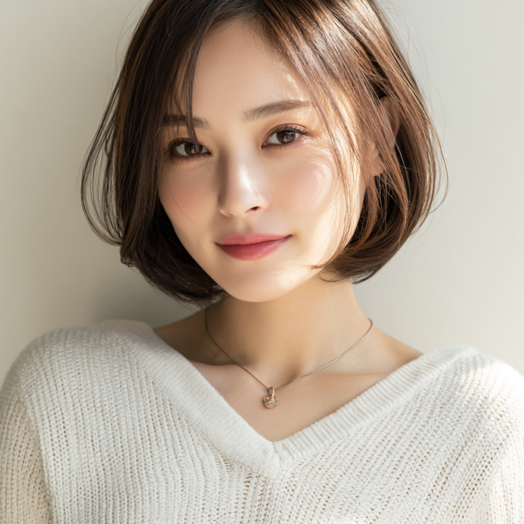 あご下の長さを基準に、毛先が自然に内側へ収まるようにカットすることで、コンパクトでありながらもやわらかな女性らしさが感じられるシルエットに仕上げています。